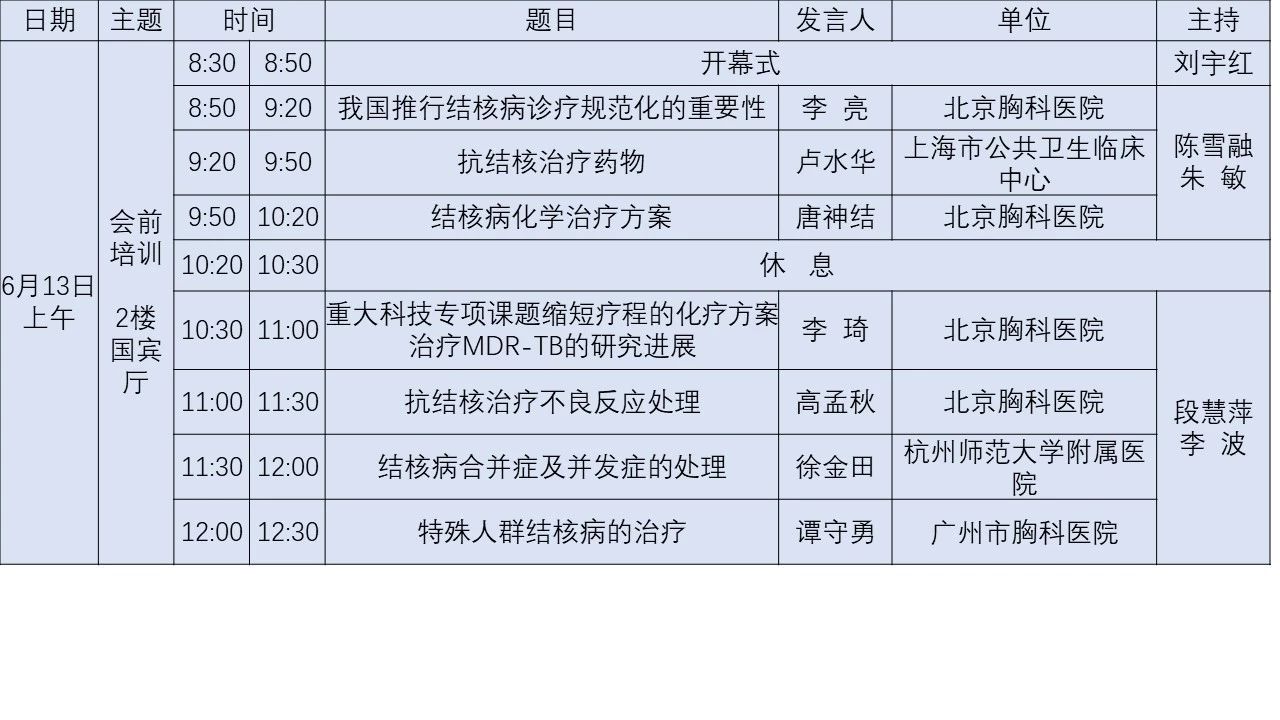 中华医学会2019年全国结核病学术大会(详细日程)