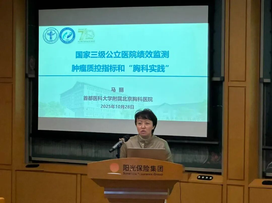 北京胸科医院医务处副处长马丽在《国家三级公立医院绩效监测肿瘤质控指标和“胸科实践”》中详细解读了国家肿瘤质控六大指标,并分享了医院在肺癌MDT建设、移动CT筛查、“一扫双筛”模式等方面的实践成果。