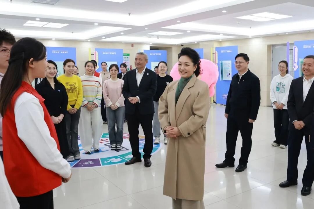 彭丽媛一行来到校园结核病防治宣传活动现场,了解首都高校“百千万志愿者结核病防治知识传播活动”开展情况,参观新中国结核病防治宣传展、新技术赋能结核病防控小课堂等,鼓励大家主动了解、积极宣传结核病防治知识,勇于探索新技术新手段,为结核病防治作出贡献。