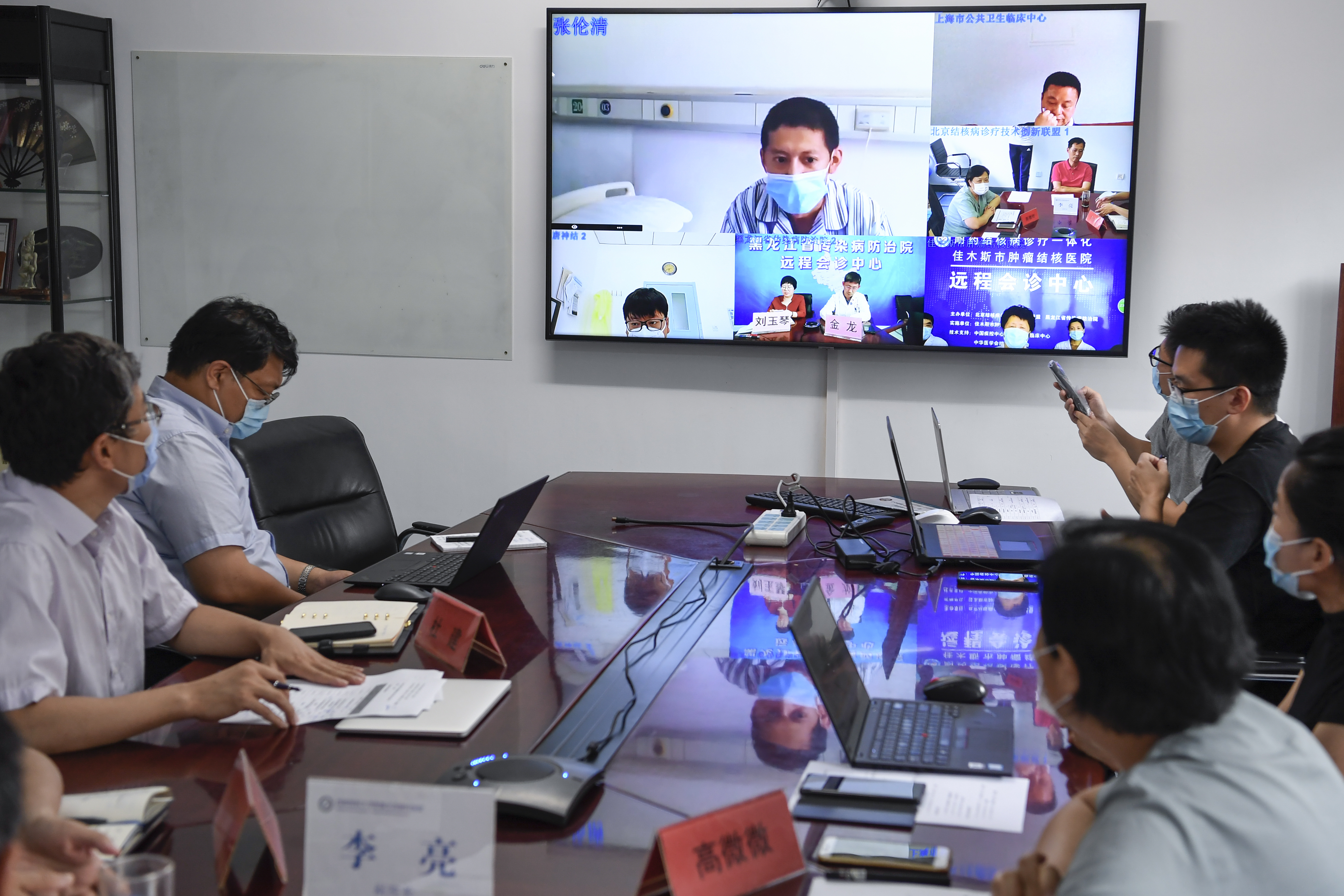 6月29日,由佳木斯市肿瘤结核医院申请,黑龙江省传染病院专家审核确认,向北京胸科医院的唐神结专家团队发起远程三级查房申请,通过联盟和合作伙伴搭建的“百医通”互联网诊疗平台,实现了北京胸科医院唐神结教授、高微微教授、上海市公共卫生临床中心卢水华教授、黑龙江省传染病防治院金龙主任、佳木斯肿瘤结核医院专家团队以及病房患者多方实时视频交流,通过市级、省级再到国家级的“三级四地五方”的会诊查房,进行“零距离”沟通。