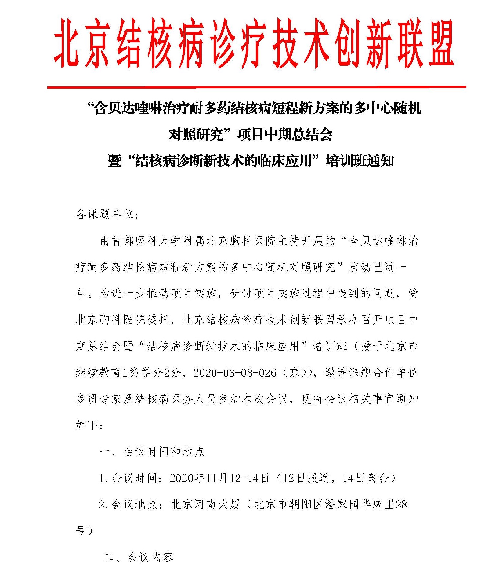 “含贝达喹啉治疗耐多药结核病短程新方案的多中心随机对照研究”项目中期总结会暨“结核病诊断新技术的临床应用”培训班通知.pdf